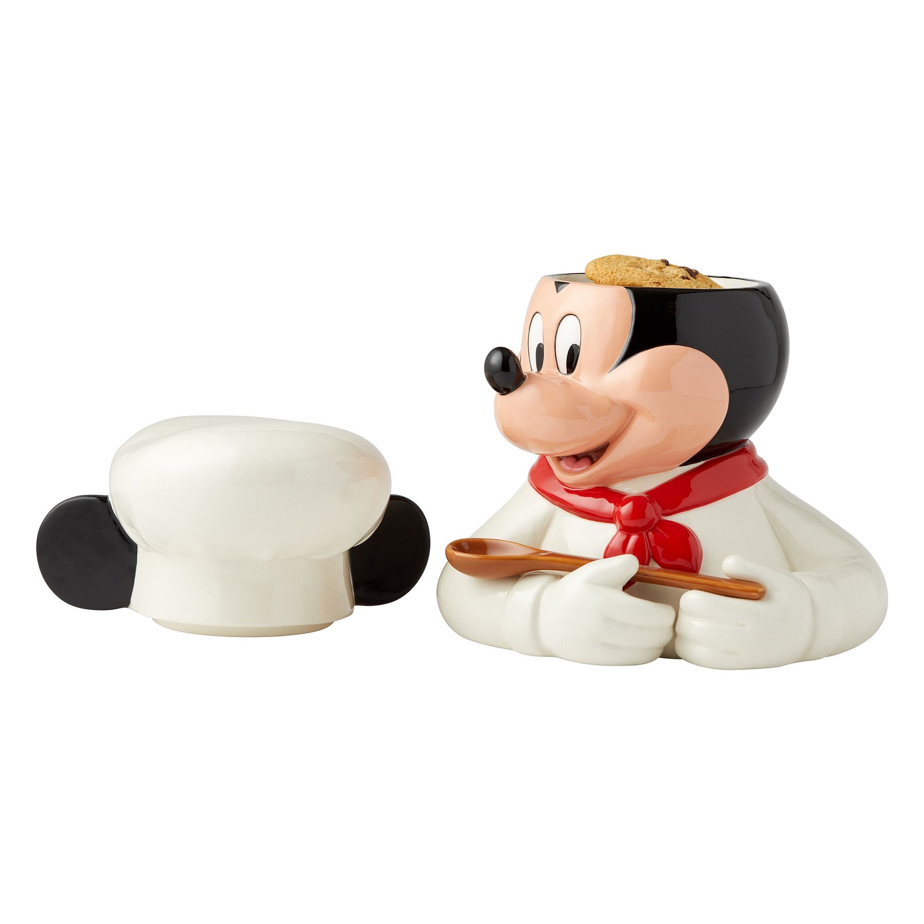 Ready to bring a smile to family and friends, this bright and happy Chef Mickey Mouse cookie jar is crafted of durable stoneware, fully sculpted and hand-painted. Standing approximately 11" tall, lift Mickey's chef's hat to ("Oh, Boy!") access treats.