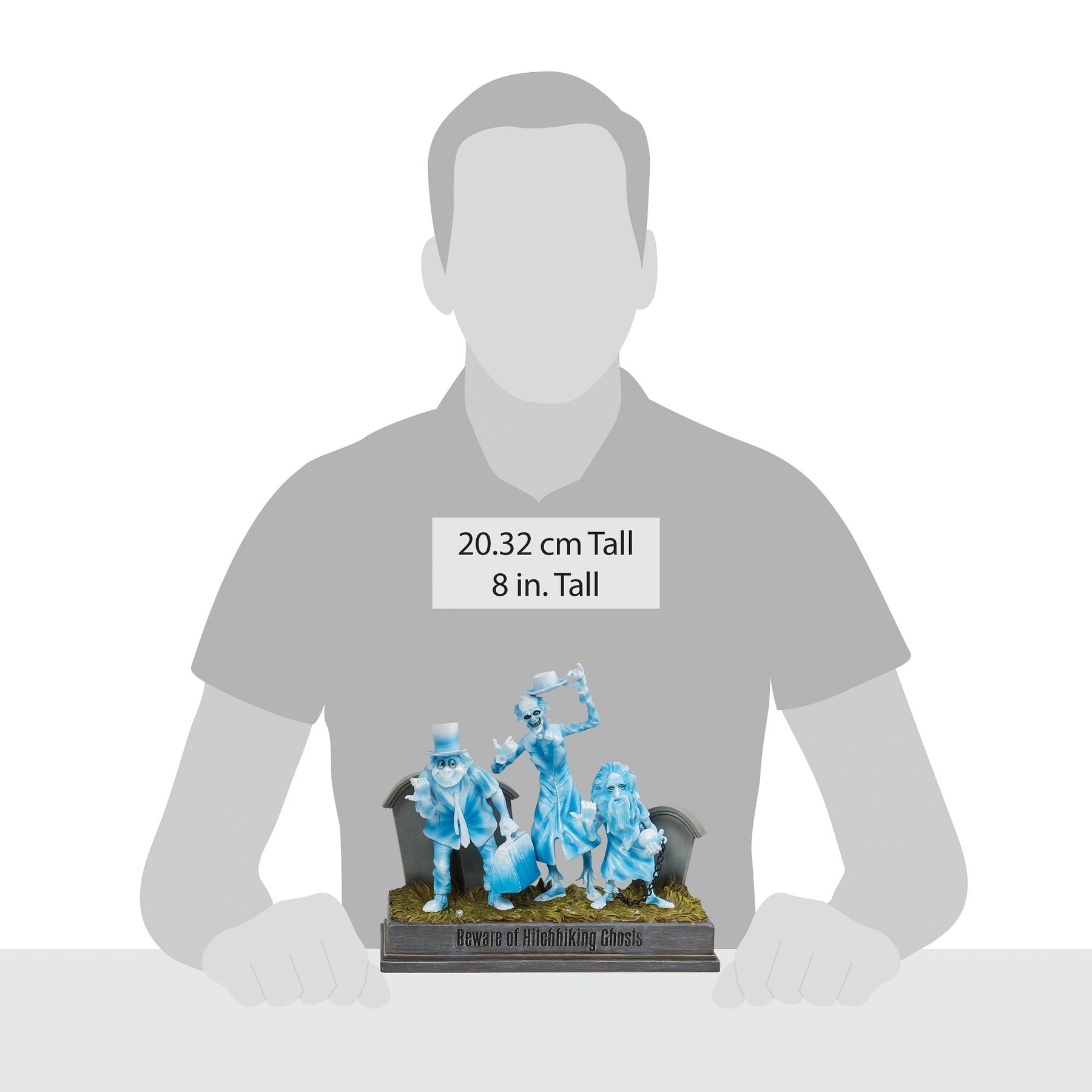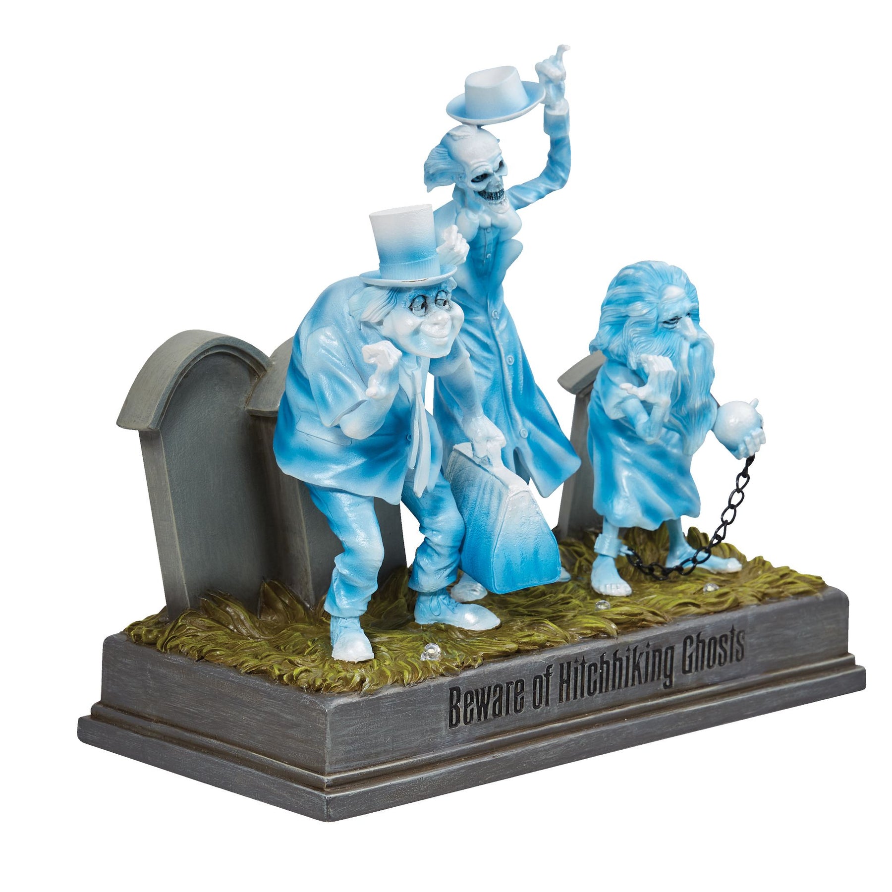 As the beloved Disney attraction warns "Beware of Hitchhiking Ghosts!" New from the Disney Showcase Collection, Gus, Ezra and Phineas are a ghoulishly delightful in opalescent paint that shimmers in the moonlight. Light up feature.