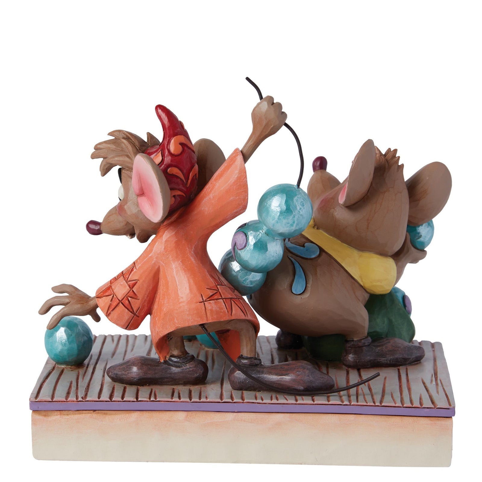 This darling creation from Jim Shore features Cinderella's best friends, Gus and Jaq. The playful pair are always getting into trouble but remain helpful and loyal companions. After breaking a string of rosemale beads, Jaq collects them on Gus' tail!- Introduced January 2024
